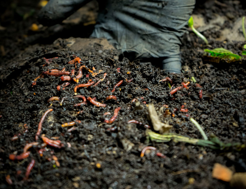 We’ve developed a commercial-scale worm farm to address the challenge of our depleting soils utilizing castings (vermicast/worm excrement).